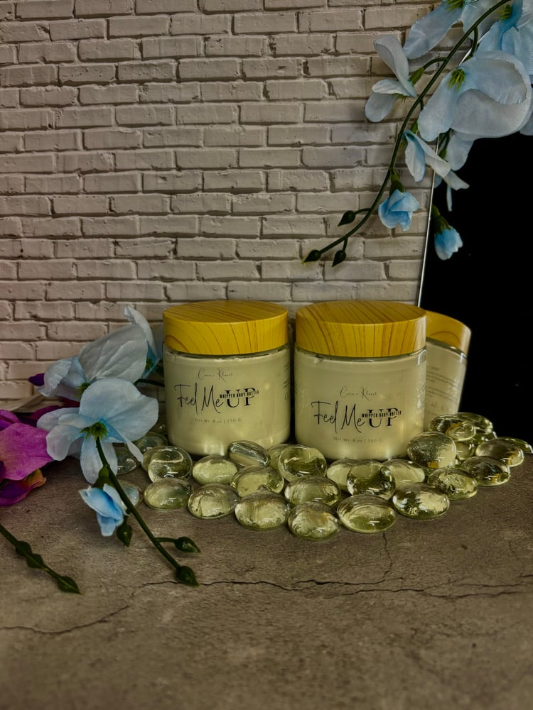 Indulge in the art of touch. Soft, smooth, and impossible to resist—this butter was made to be touched. Feel Me Up is a lightweight yet decadent body butter. Powered by shea butter, the ultimate skin superfood that helps with dryness, wrinkles, dark spots, discoloration, stretch marks, and blemishes. Quick-absorbing and never sticky, it melts right in, leaving your skin silky and irresistible all year round. Skin so divine, its unforgettable